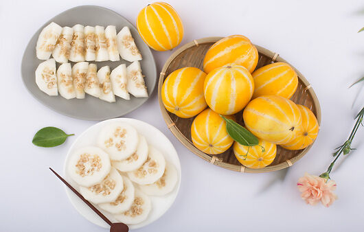 참외의 제철은 여름이지만, 요즘에는 참외를 비닐하우스에서 재배가 가능하여 1년 내내 달콤한 참외를 맛볼 수 있습니다. 참외는 오이와 멜론의 중간정도 맛을 내어, 과일인지 채소인지 헷갈려 하시는 분들이 많은데요. 우리나라에서는 참외를 채소로 분류하고 있습니다. 참외는 진해, 거담 작용을 하고 풍담, 황달, 이뇨에도 효과가 있다는 동의보감 기록이 있습니다.